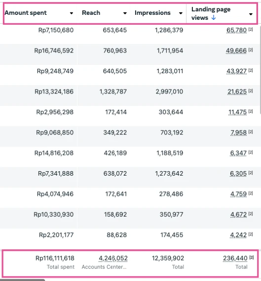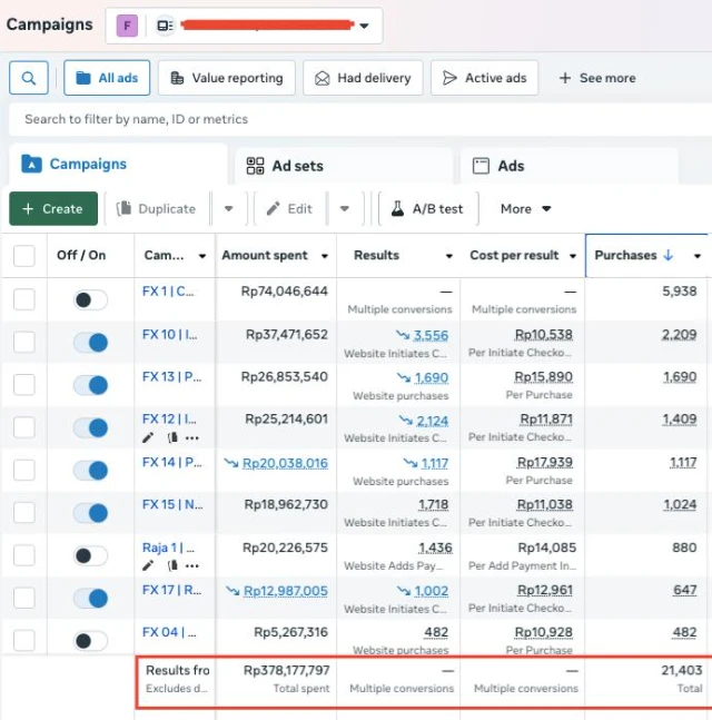 Salah satu spending iklan META yang dikelola.